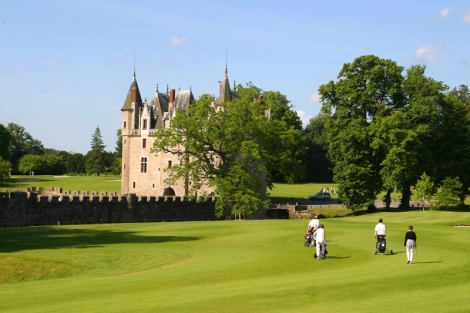 Depuis 1967, ce parcours d’apparence facile sanctionne les joueurs dès lors qu’ils s’égarent sous les branches des vénérables feuillus. Et quand on sort de la forêt quasi-omniprésente, pas facile de rester dans son jeu : se dressent en effet tout proches les remparts et les tourelles de l’impressionnant château moyenâgeux, juché au bord d’un lac. Le tracé signé Henry Cotton est accessible et élégant car en été il devient une promenade fleurie...