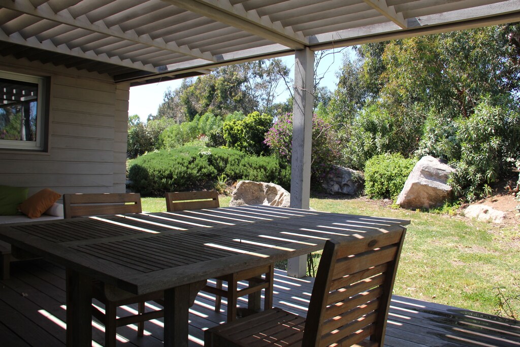 Terrasse de 270m2 donnant sur la piscine à débordement.