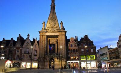 | Détruit à 90 % en 1918, le centre-ville est reconstruit entre 1920 et 1927. Avec le pignon comme seul dénominateur commun, les maisons ceinturant la Grand’Place sont traitées dans un style éclectique et Art Déco. A découvrir également, les caves privées de la famille Delforge où se sont protégés les Béthunois durant les guerres. | ![]() |